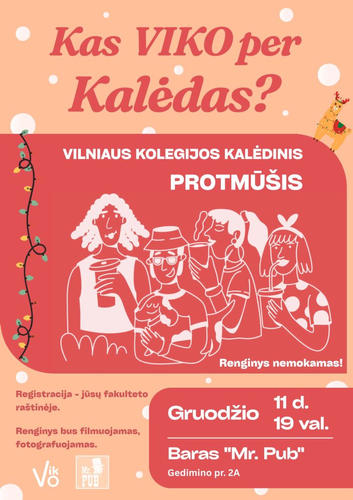 Artėjant gražiausioms metų šventėms, kviečiame jas pasitikti kartu! Vilniaus kolegijos studentai organizuoja Kalėdinį protmūšį „Kas VIKO per Kalėdas?“, skirtą ir studentams, ir kolegijos darbuotojams.