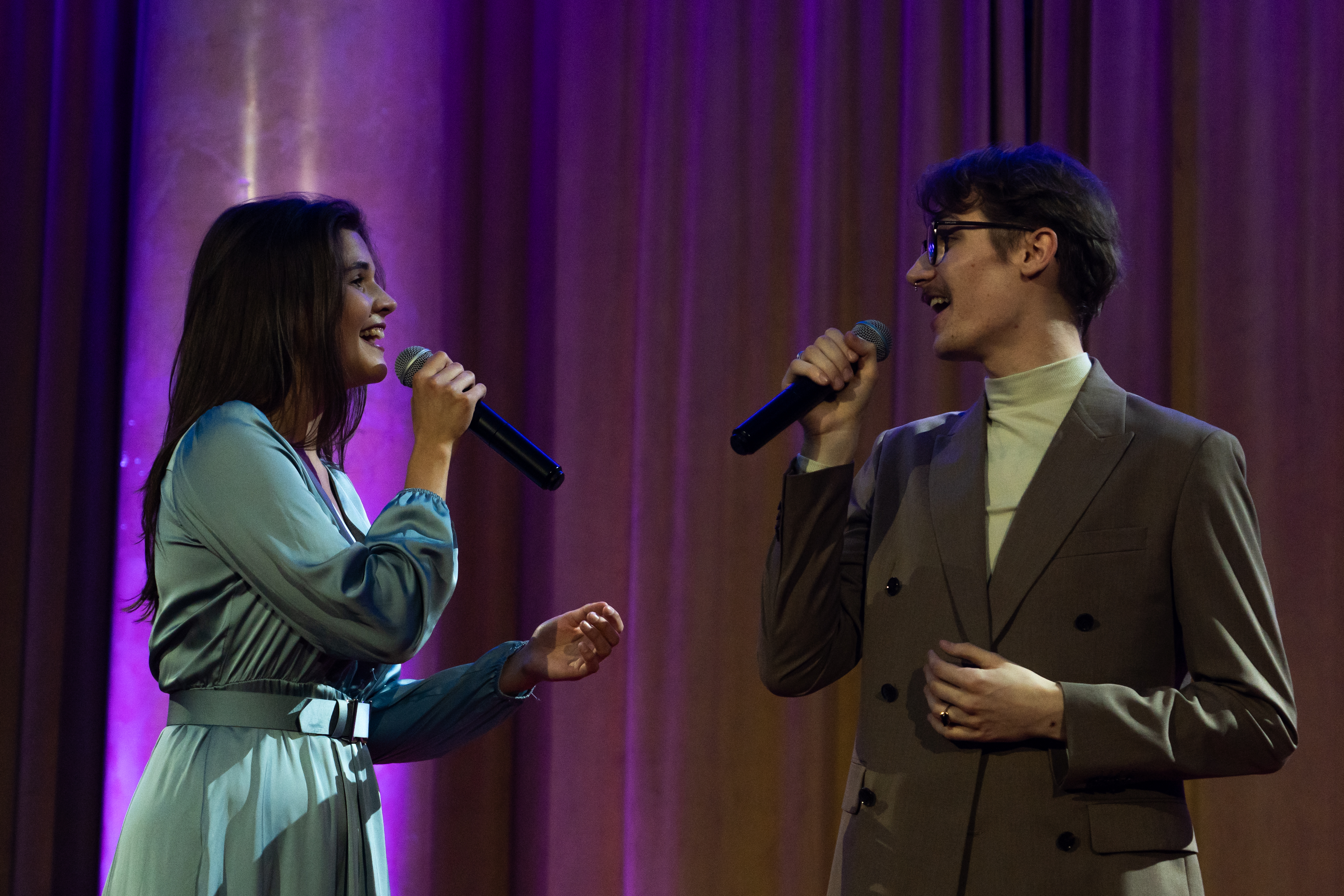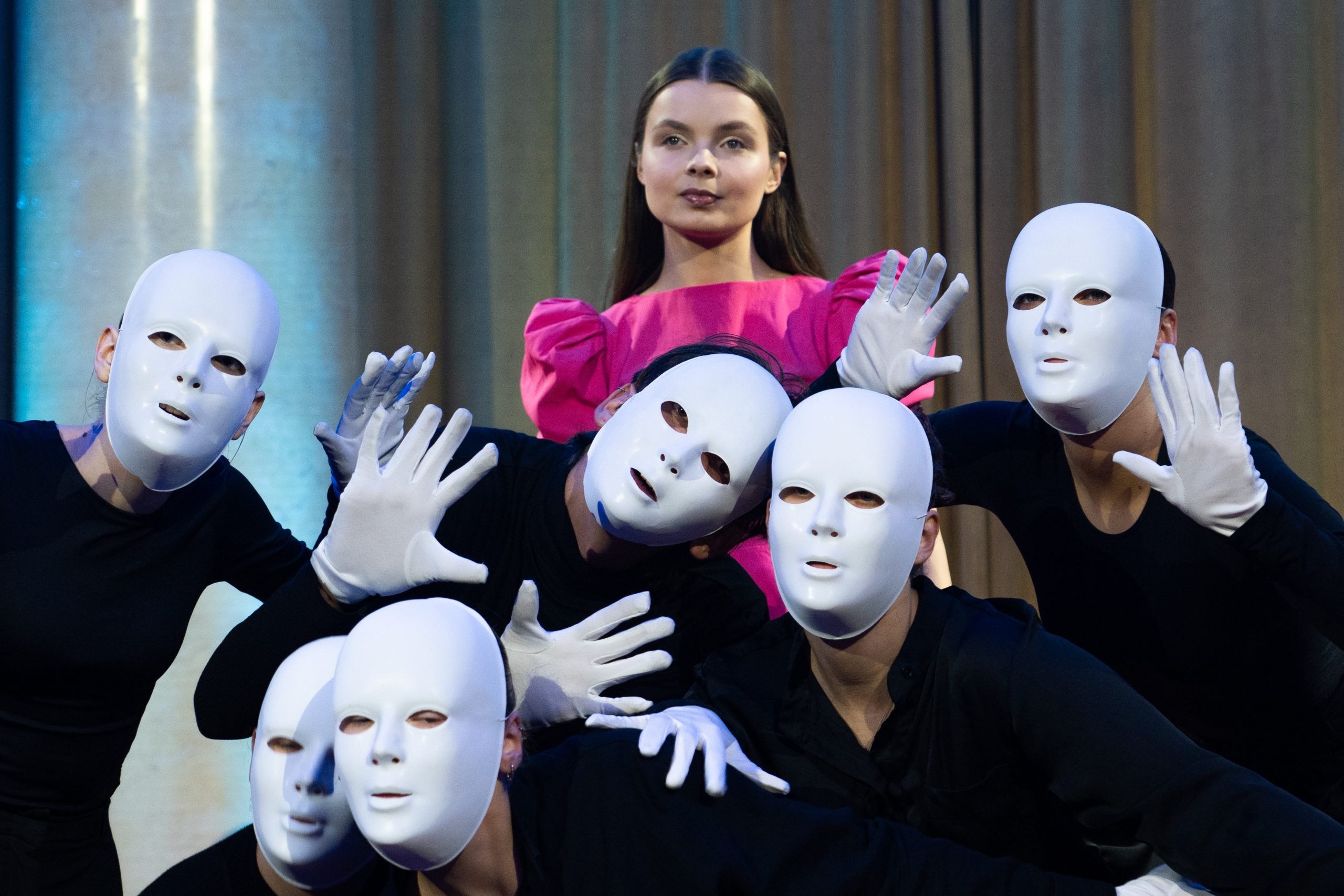 Šiltas rudens oras ir paskutiniai saulės spinduliai nesutrukdė magiškai kelionei į Vilniaus kolegijos Menų ir dizaino fakulteto Muzikinio teatro studijų programos studentų teatralizuotą muzikinį spektaklį „Muzikinių kaukių misterija“, kuris įvyko rugsėjo 20 dieną Vilniaus Rotušėje. Kūrinių personažus įkūnijo: Modestas Karanda, Toma Pauraitė, Kamilė Vaitkutė ir Laura Degolado Brito. Po paslaptingomis kaukėmis slėpėsi: Austėja Grosaitė, Kamilė Petrėtytė, Kamilė Aksinavičiūtė, Vaiva Drebulytė, Austėja Jančauskaitė ir Alanas Lomonosovas. Dėkojame Muzikinio teatro studijų programos studentams, kurių tikslas – persikūnyti į personažus ir paliesti žiūrovų širdis – buvo puikiai pasiektas. Spektaklio metu baltos kaukės tapo paslapties ir transformacijos simboliu, o muzika, judesys ir personažai susiliejo į vieningą istoriją, atskleidžiančią daugybę emocijų ir veidų.