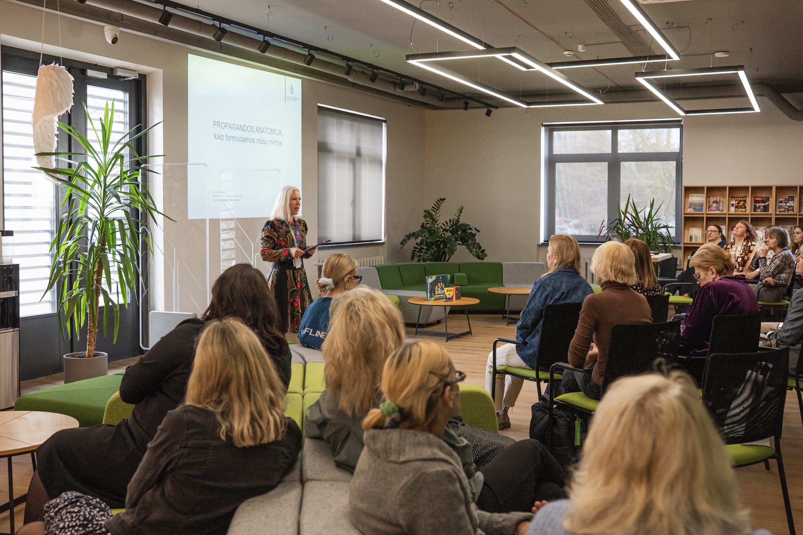 Balandžio 24 d. Studijų ir mokslo išteklių centre (SMIC) vyko paskaita ir diskusija „Propagandos anatomija: kaip formuojamos mūsų mintys“, kurią vedė dr. Lina Bivainienė. Renginio metu aptarti propagandos veikimo principai, informacijos poveikio visuomenei aspektai bei kritinio vertinimo svarba. Taip pat pateikti konkretūs pavyzdžiai iš šiuolaikinės medijų erdvės, leidžiantys geriau suprasti, kaip informacija gali būti sąmoningai formuojama siekiant paveikti visuomenės nuostatas.