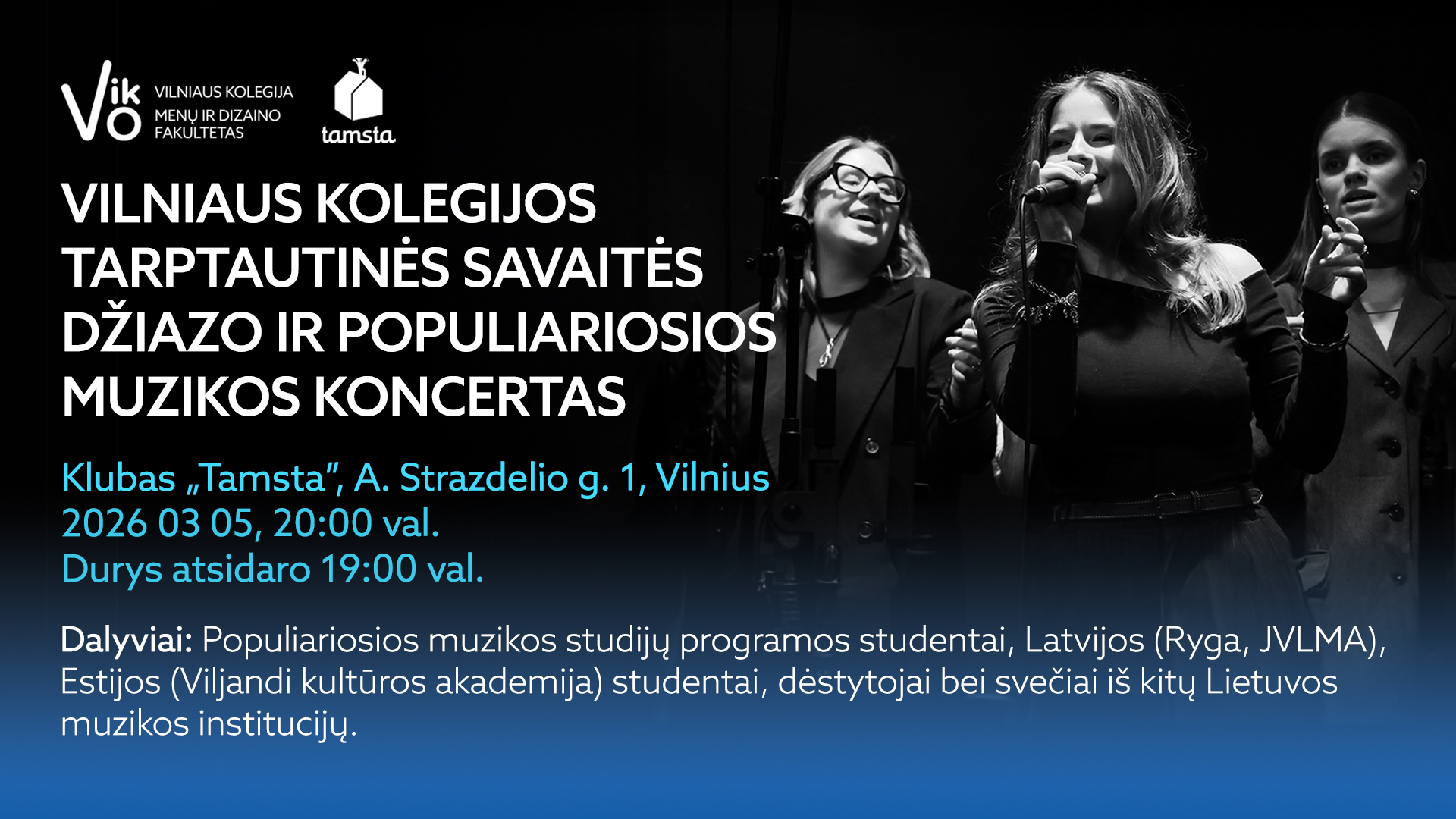 Koncerte pasirodys Vilniaus kolegijos Populiariosios muzikos programos studentai ir dėstytojai, taip pat Latvijos (Ryga, JVLMA), Estijos (Viljandi kultūros akademija) atstovai bei svečiai iš kitų Lietuvos muzikos institucijų.