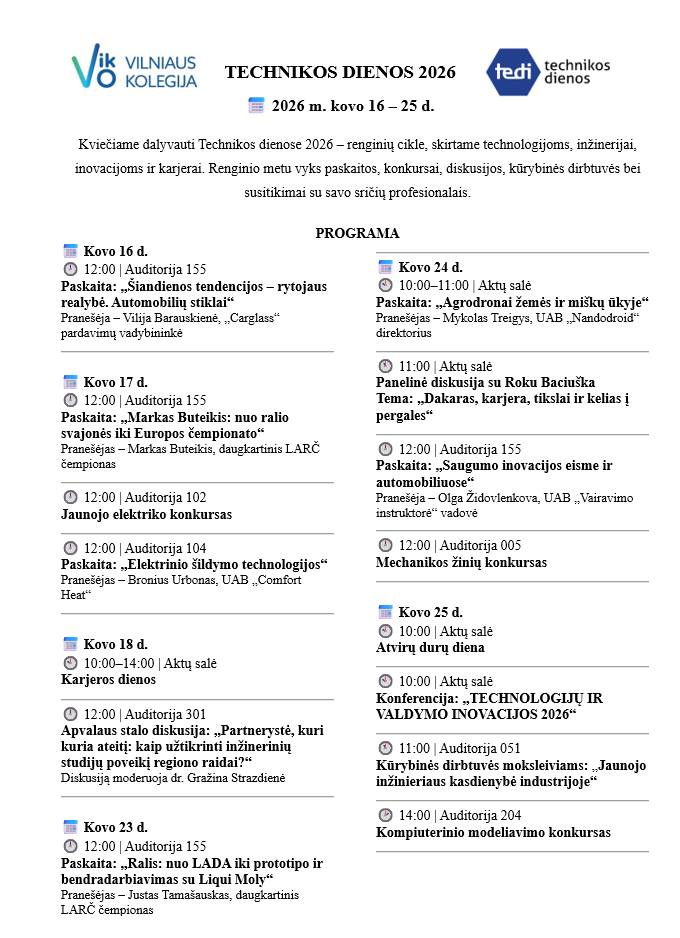 Vieta: Technikos fakultetas, Olandų g. 16, Vilnius