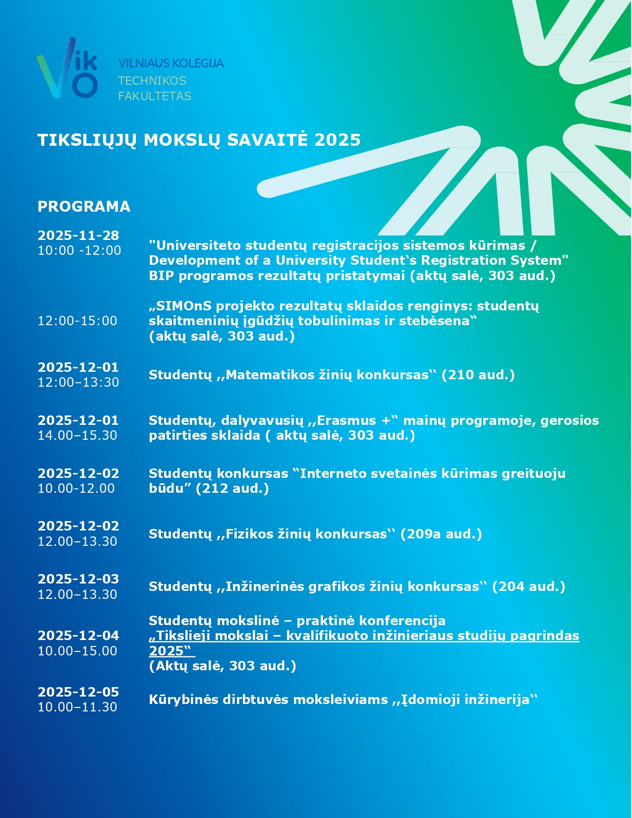 Vieta: Technikos fakultetas, Olandų g. 16, Vilnius