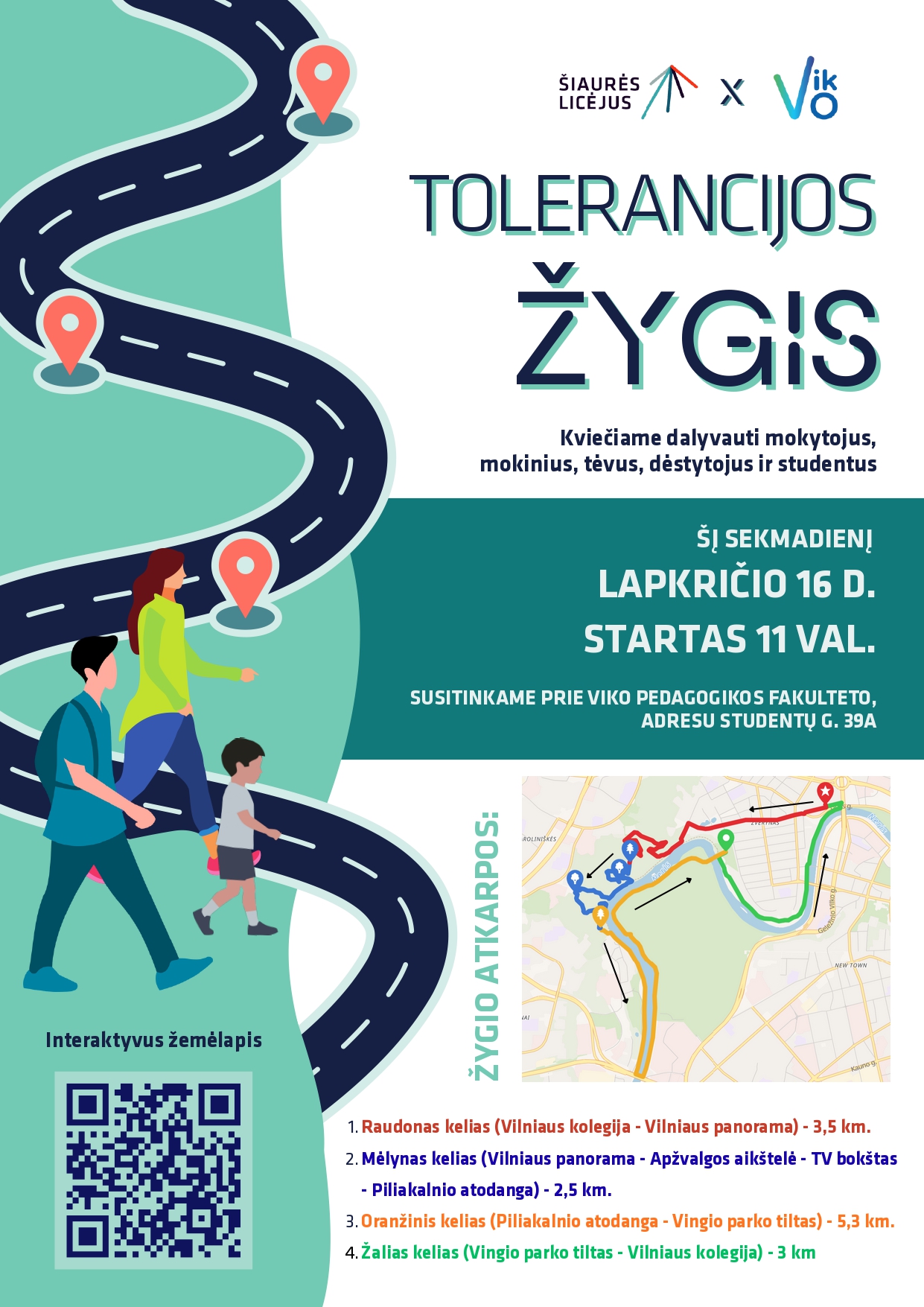 Vilniaus kolegijos ir Šiaurės licėjaus organizatoriai kviečia visus į Tolerancijos žygį šį sekmadienį, lapkričio 16 dieną. Startuojame 11 val. nuo VIKO Pedagogikos fakulteto, Studentų g. 39 A.