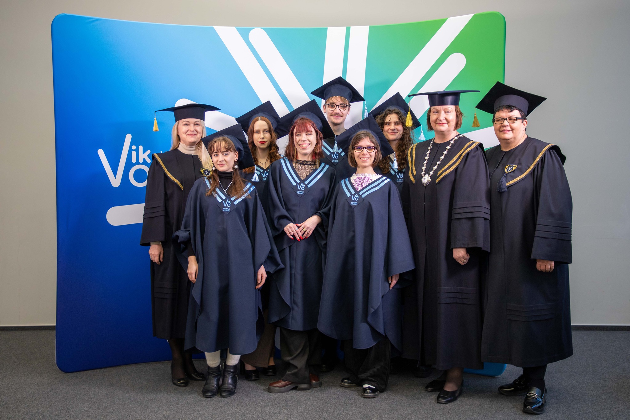Šių metų žiemos diplomų įteikimo ceremonijos buvo ypatingos ir tuo, kad diplomantai pasipuošė naujomis VIKO mantijomis.