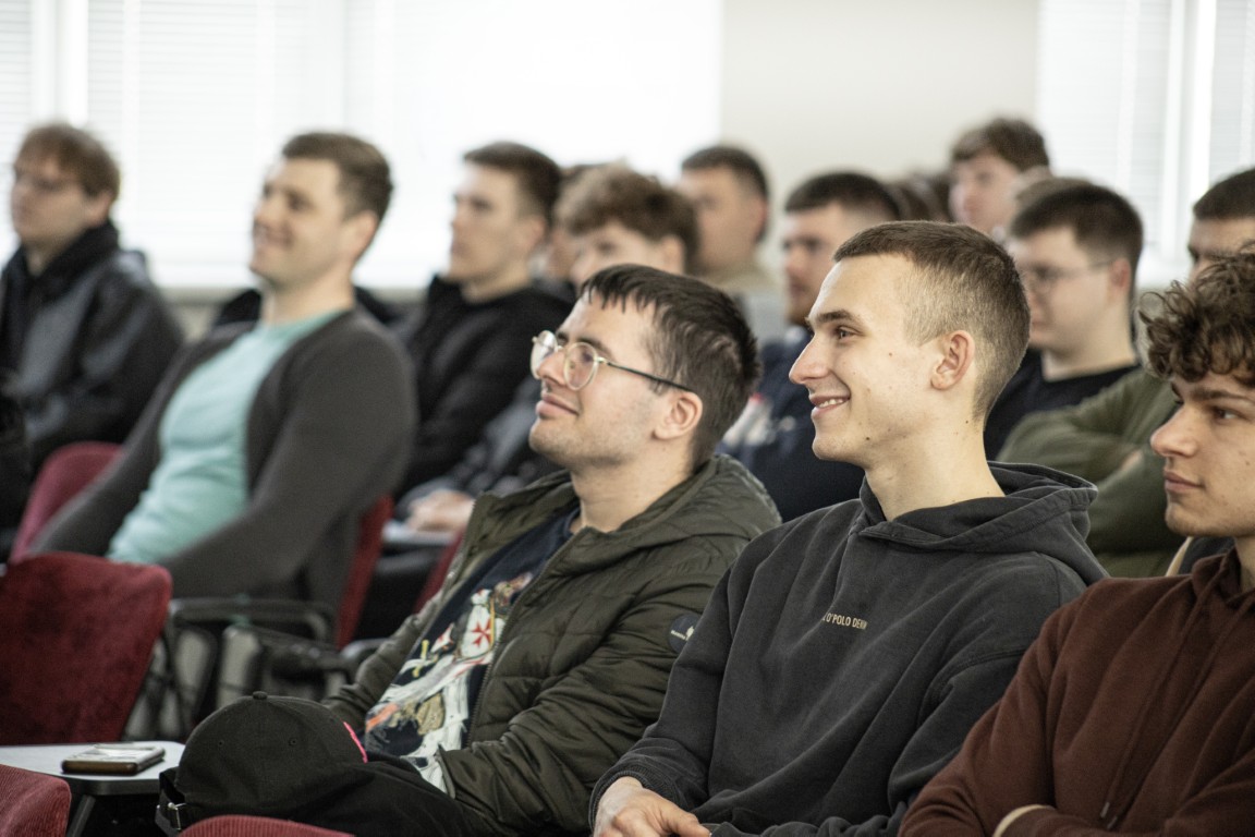 VIKO Technikos fakulteto studentai klausėsi diskusijos su Roku Baciuška ir „Grigeo Tissue“ technologijos vadovu Eitvydu Remeika