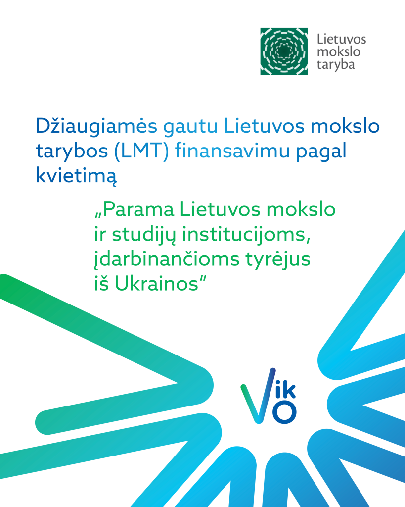 Vilniaus kolegijos paraiška, pateikta pagal Lietuvos mokslo tarybos (LMT) kvietimą „Parama Lietuvos mokslo ir studijų institucijoms, įdarbinančioms tyrėjus iš Ukrainos“ gavo finansavimą.