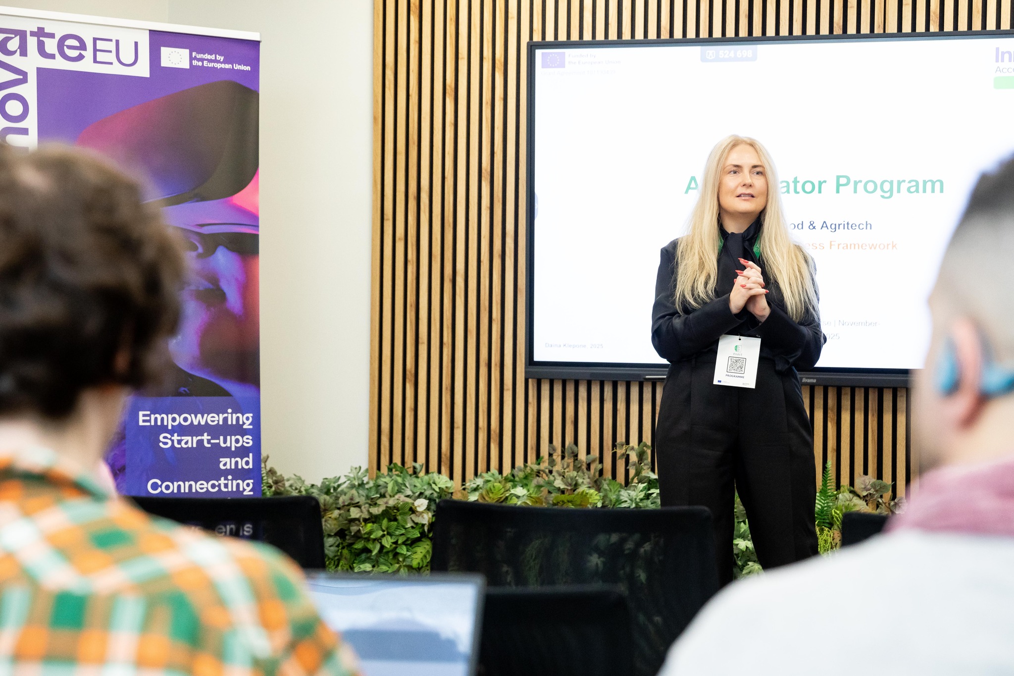 Lapkričio 24–25 d. Vilniaus kolegija taip pat tapo ir tarptautinės iniciatyvos „Innovate-EU“ AgroAkceleratoriaus starto vieta. Programa suvienijo agromaisto ekosistemos giliųjų technologijų (deeptech) startuolius, o akceleravimo procesą vedė žinoma inovacijų ekspertė, VILNIUS TECH mokslininkė Daina Kleponė.