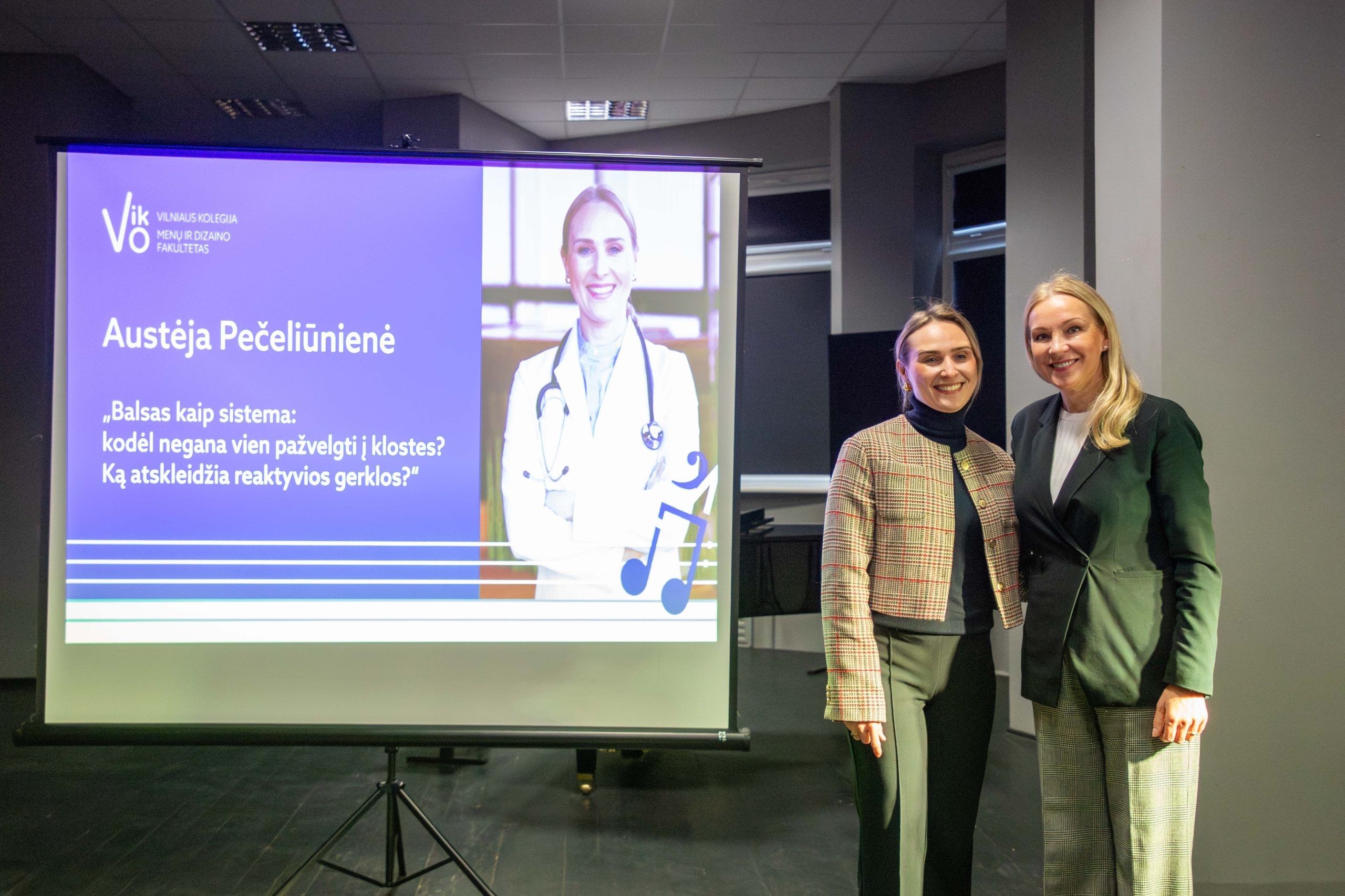 Gydytoja otorinolaringologė Austėja Pečeliūnienė pranešime „Balsas kaip sistema: kodėl negana vien pažvelgti į klostes? Ką atskleidžia reaktyvios gerklos?“ kalbėjo apie balso sveikatos problemas ir jų prevenciją.