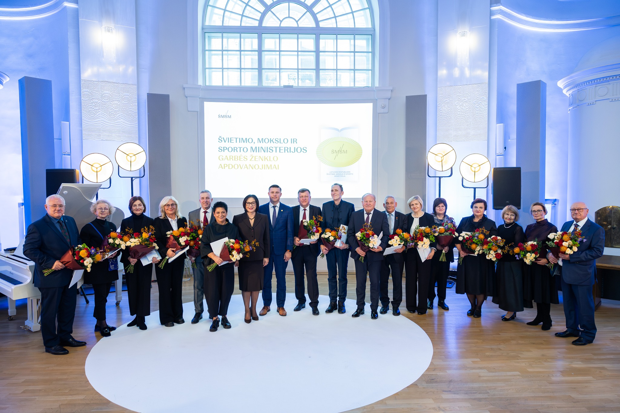 Ministerijos garbės ženklu apdovanoti: Ričardas Ališauskas, Švietimo, mokslo ir sporto ministerijos Strateginio planavimo skyriaus vedėjas; dr. Rita Dukynaitė, Švietimo, mokslo ir sporto ministerijos Strateginio planavimo skyriaus vyriausioji patarėja; dr. Daiva Garnienė, Kauno Maironio universitetinės gimnazijos direktorė; dr. Sigita Girdzijauskienė, Lietuvos įtraukties švietime centro Vaiko pedagoginio psichologinio vertinimo metodikų grupės vadovė; Erikas Griškevičius, Kauno tarptautinės gimnazijos direktorius; Gražina Kaklauskienė, VšĮ Švietimo mainų paramos fondo direktoriaus pavaduotoja; Aleksandra Luckevič, Lietuvos kurčiųjų ir neprigirdinčiųjų ugdymo centro surdopedagogė ekspertė; Valerijus Makūnas, Kauno rajono savivaldybės meras; prof. dr. Romualdas Malinauskas, Lietuvos sporto universiteto profesorius; Alvydas Puodžiukas, Švietimo, mokslo ir sporto ministerijos Mokyklų veiklos skyriaus vedėjas; dr. Virginija Rupainienė, Kauno Panemunės progimnazijos direktorė; prof. dr. Liudmila Rupšienė, Klaipėdos universiteto Socialinių ir humanitarinių mokslų fakulteto Pedagogikos katedros profesorė, Lietuvos edukacinių tyrimų asociacijos viceprezidentė; Vidas Stankevičius, ilgametis sporto specialistas, treneris; Rūta Vyšniūnienė, Lietuvos kurčiųjų ir neprigirdinčiųjų ugdymo centro surdopedagogė ekspertė; dr. Albertas Žalys, mokslų daktaras; prof. habil. dr. Vilma Žydžiūnaitė, Vytauto Didžiojo universiteto Edukologijos tyrimų instituto direktorė.