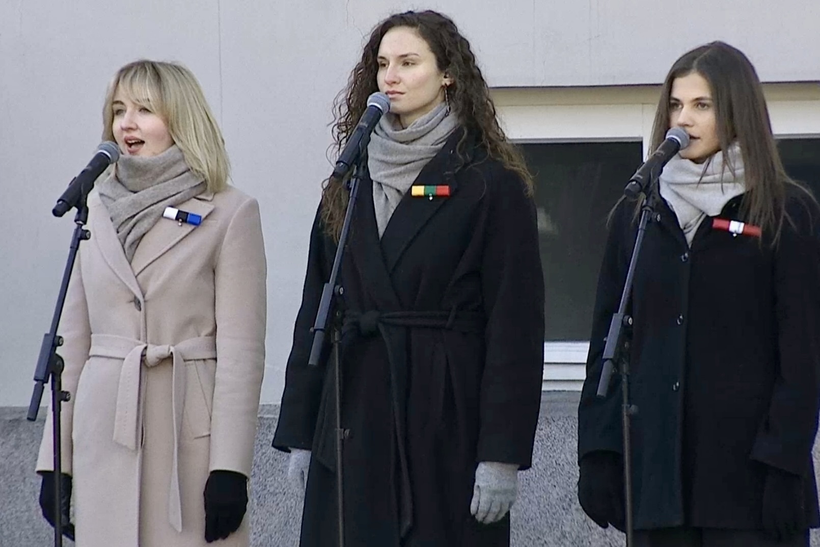 Vilniaus kolegijos studentės trijų Baltijos valstybių himnus atliko valstybinėje ceremonijoje Simono Daukanto aikštėje
