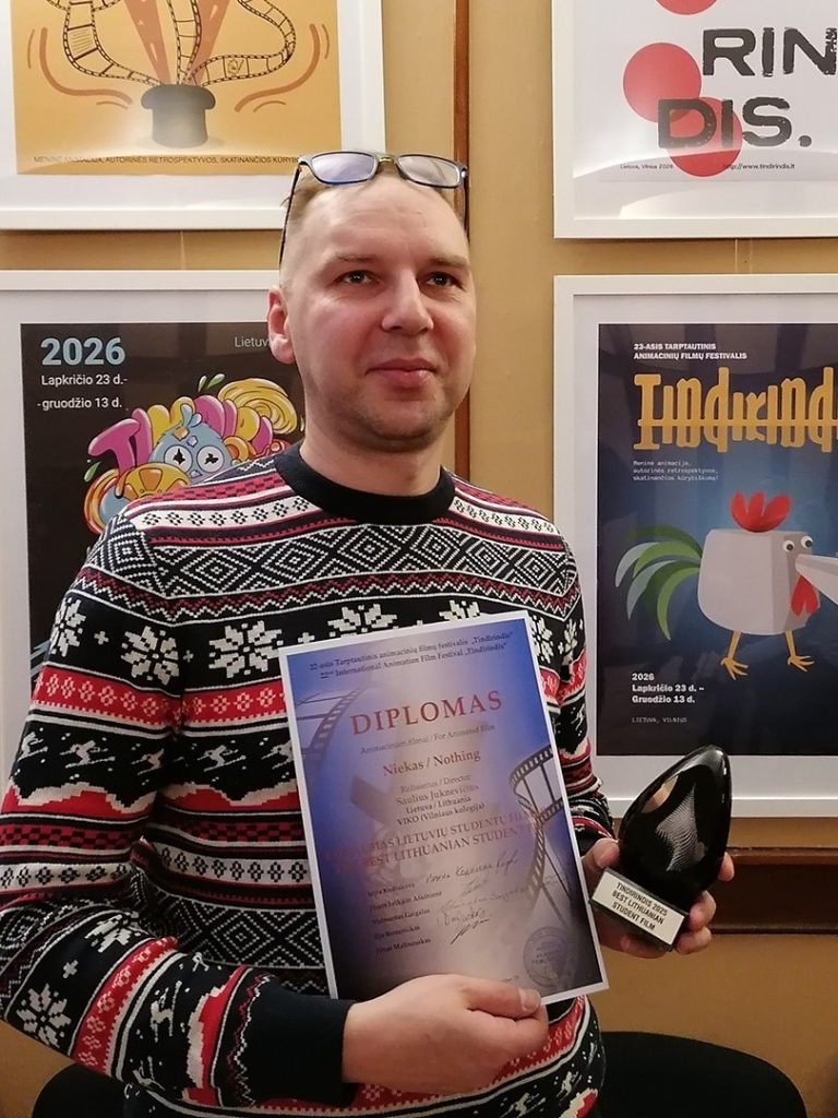 Žiuri prizais apdovanojo nugalėtojus. Geriausio lietuvių studentų sukurto filmo apdovanojimas atiteko studento Sauliaus Juknevičiaus filmukui „Niekas“ (2025, Vilniaus kolegija, darbo vadovas – doc. Valentas Aškinis). Šis baigiamasis darbas konstruojamas vadovaujantis dadaizmo automatinio naratyvo principais.