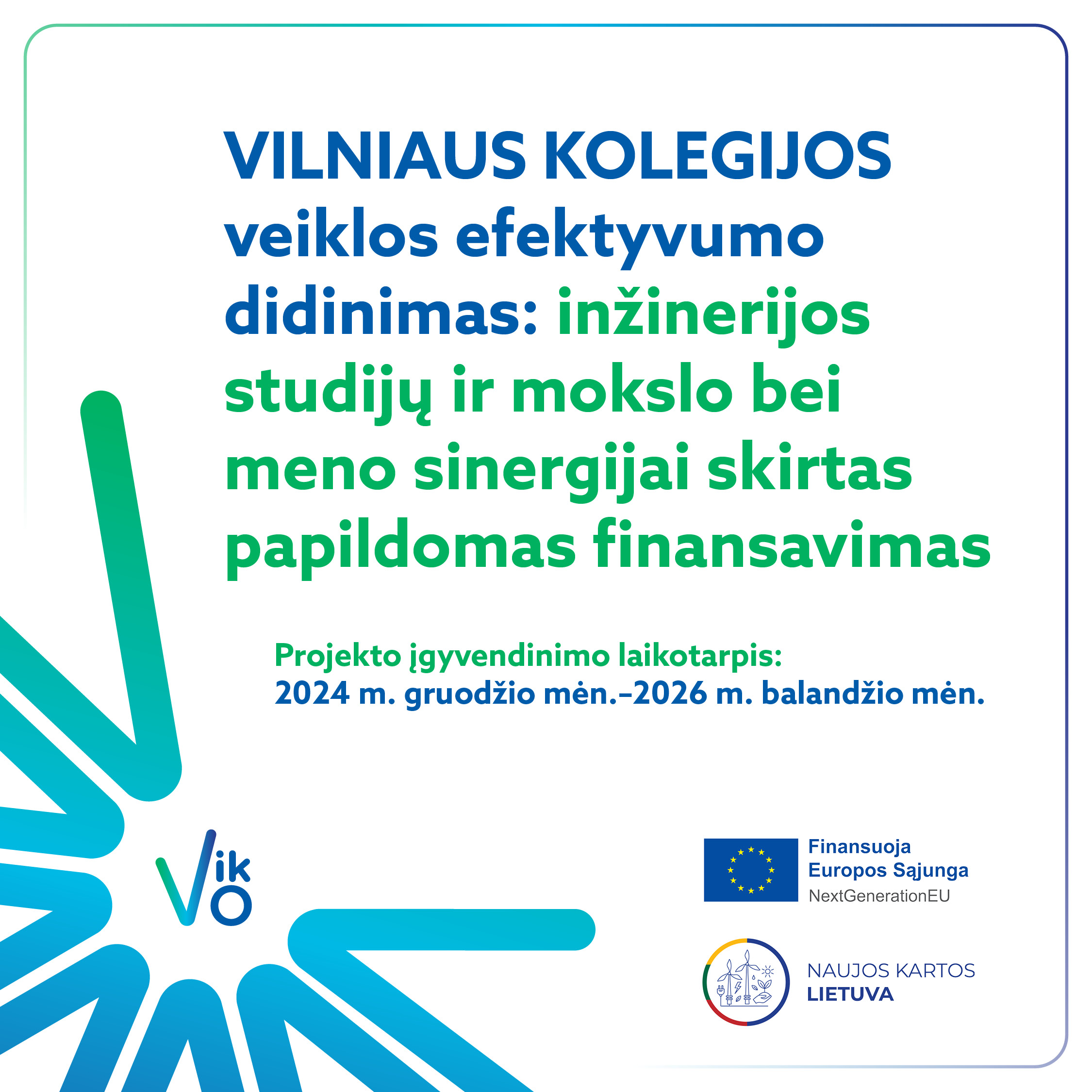Vilniaus kolegijos veiklos efektyvumo didinimas: inžinerijos studijų ir mokslo bei meno sinergijai skirtas papildomas finansavimas